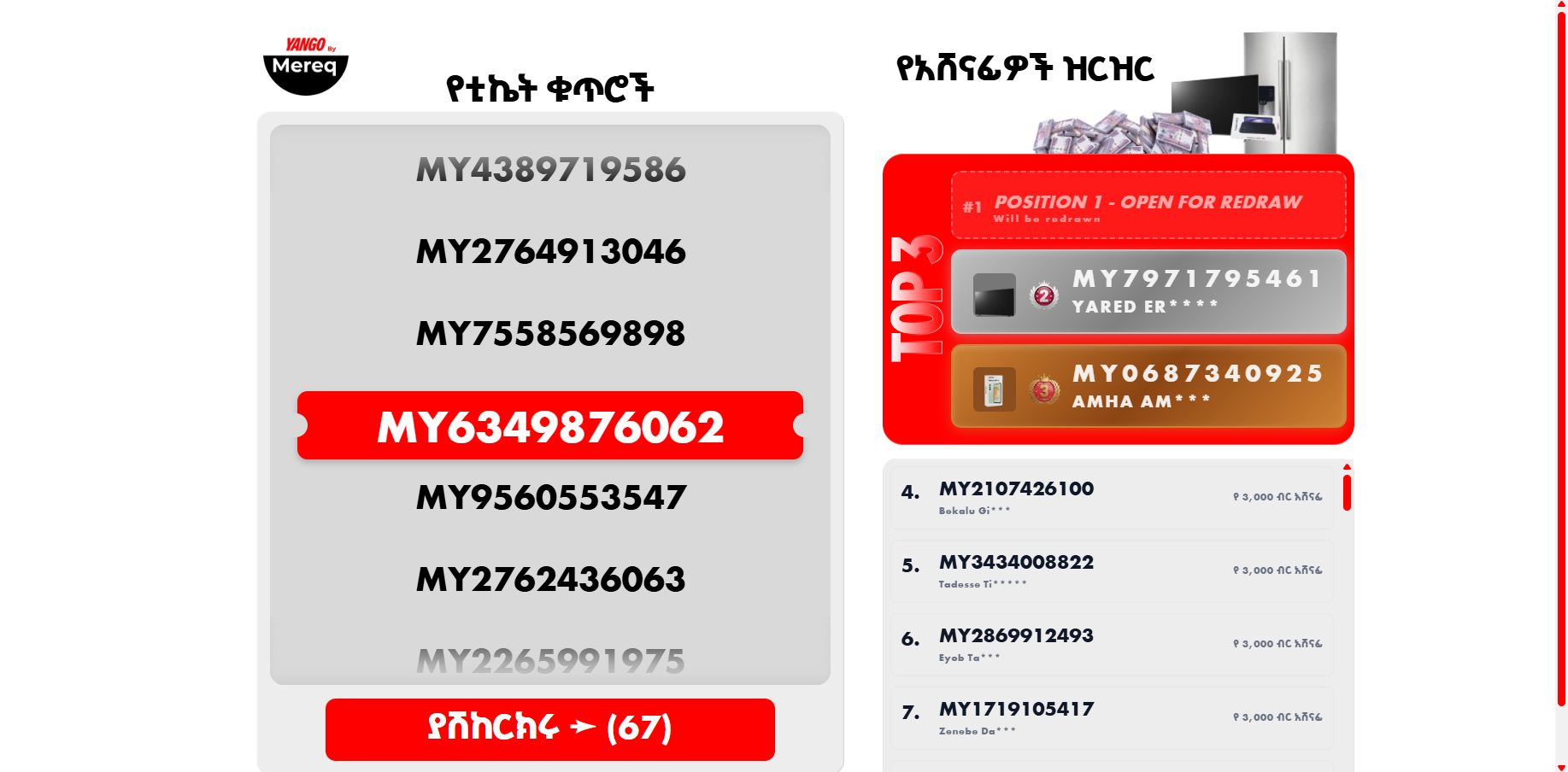 The Yango Lottery is a driver engagement platform where ride-hailing drivers earn lottery tickets for every completed trip. Winners are drawn during a live TikTok event, with prizes including refrigerators, TVs, mobile phones, and cash. The platform gamifies driver activity and enhances engagement in a fun, interactive way.